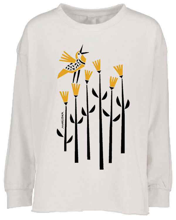 Drop Shoulder Crew Meadow Lark (Black & Yellow on White)