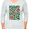 3/4 Sleeve Tee 3 Birds (Green & Red on White)