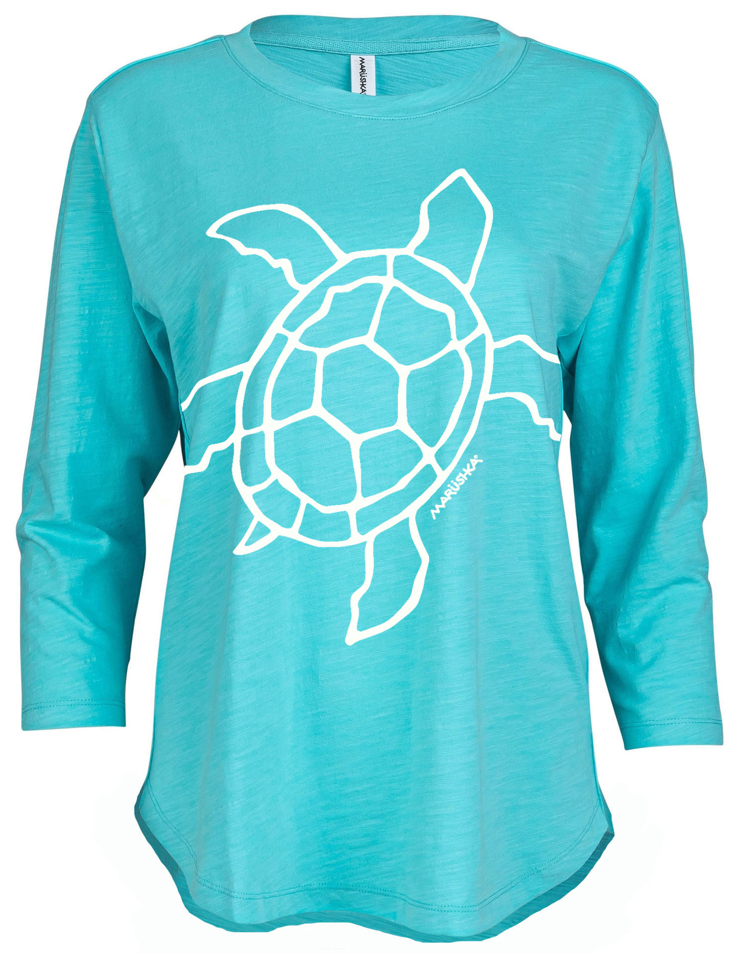 3/4 Slub Hi-Lo Big Sea Turtle (White on Pool)