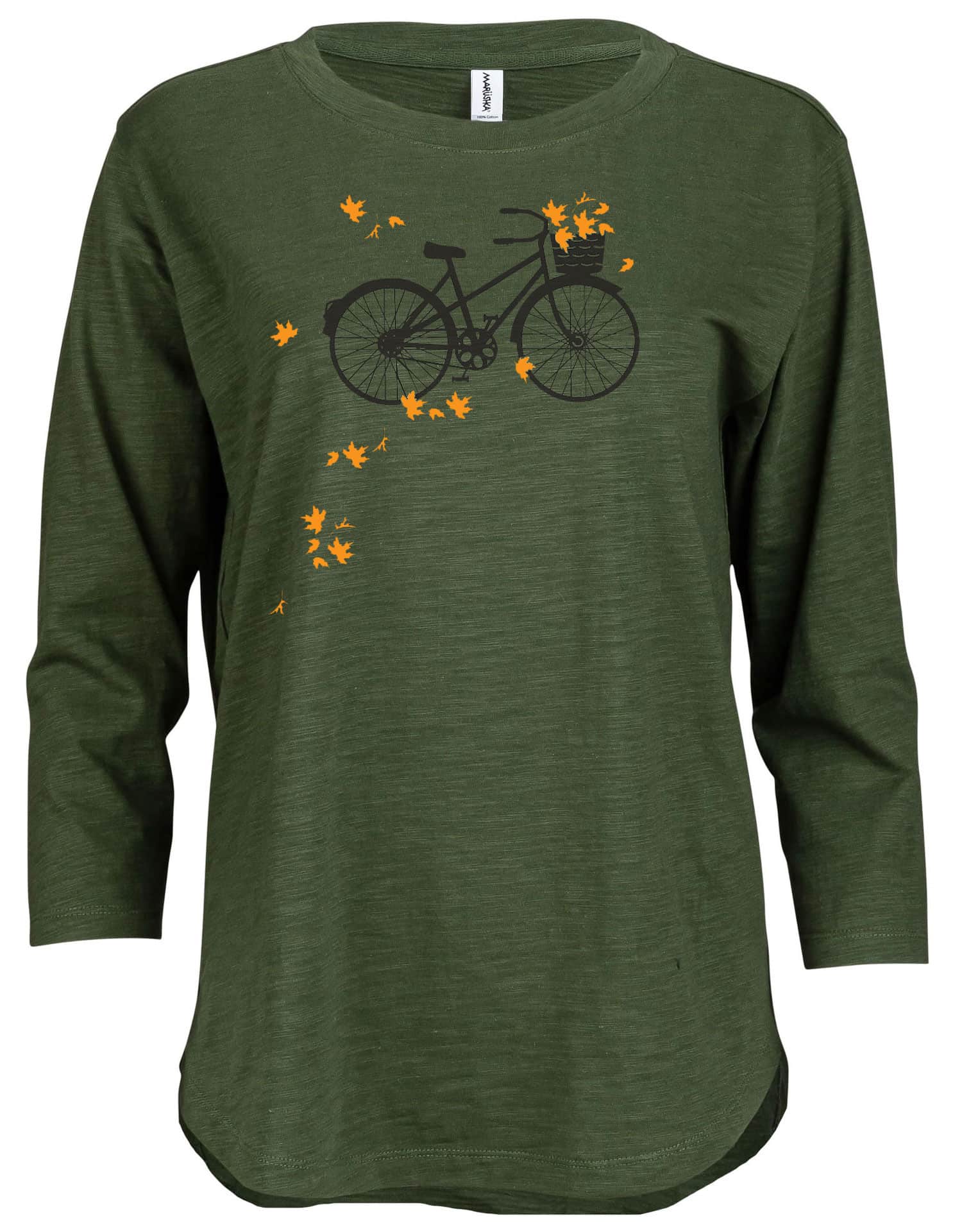 3/4 Slub Hi-Lo Bikes Leaves (Black & Yellow on Olive)