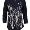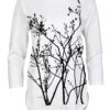 5.9 oz, 100% Cotton Slub Jersey. Features include a scoop neck, ¾ length sleeve, curved hi-lo hem line (back is longer than the front).