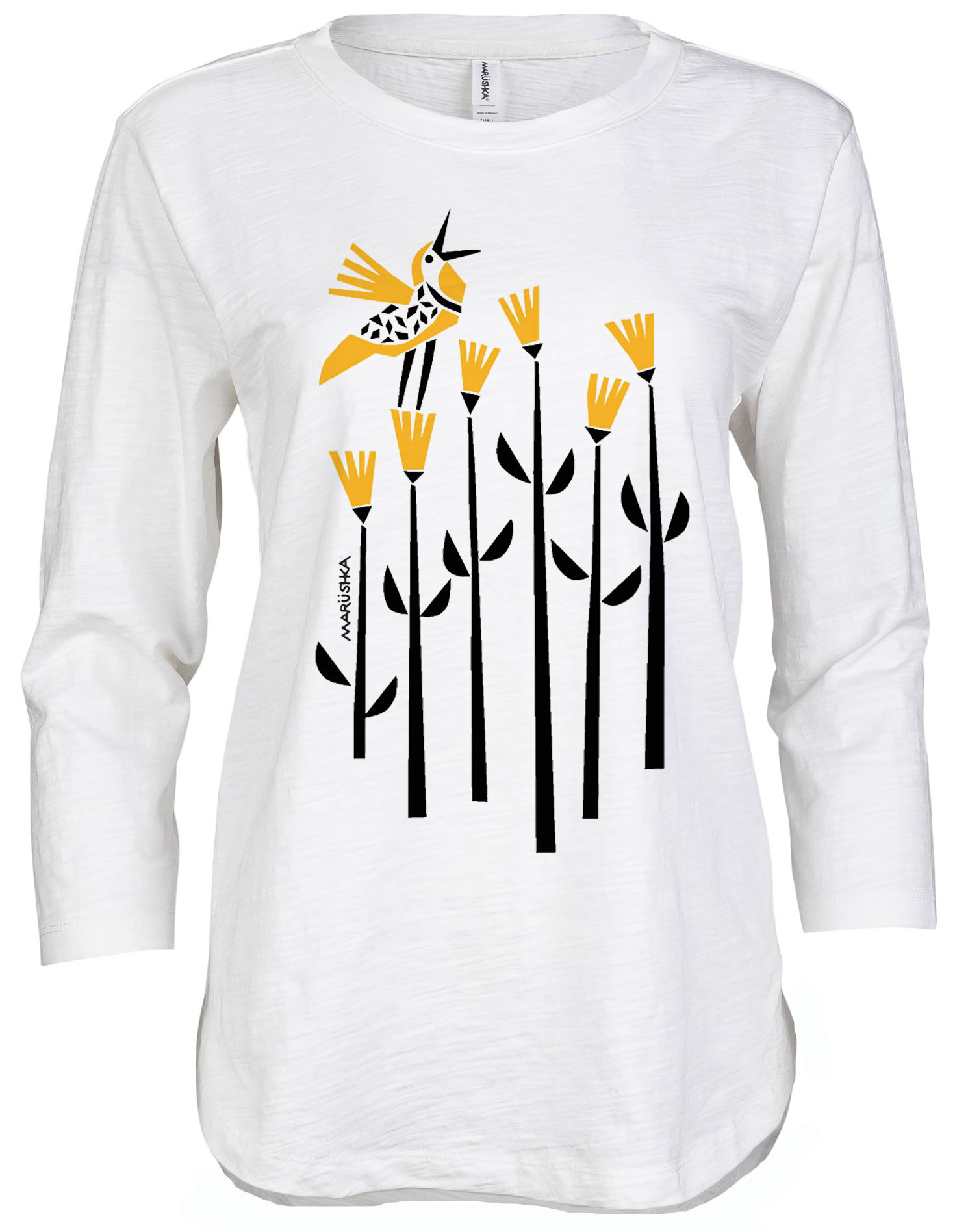 3/4 Slub Hi-Lo Meadow Lark (Black & Yellow on White)