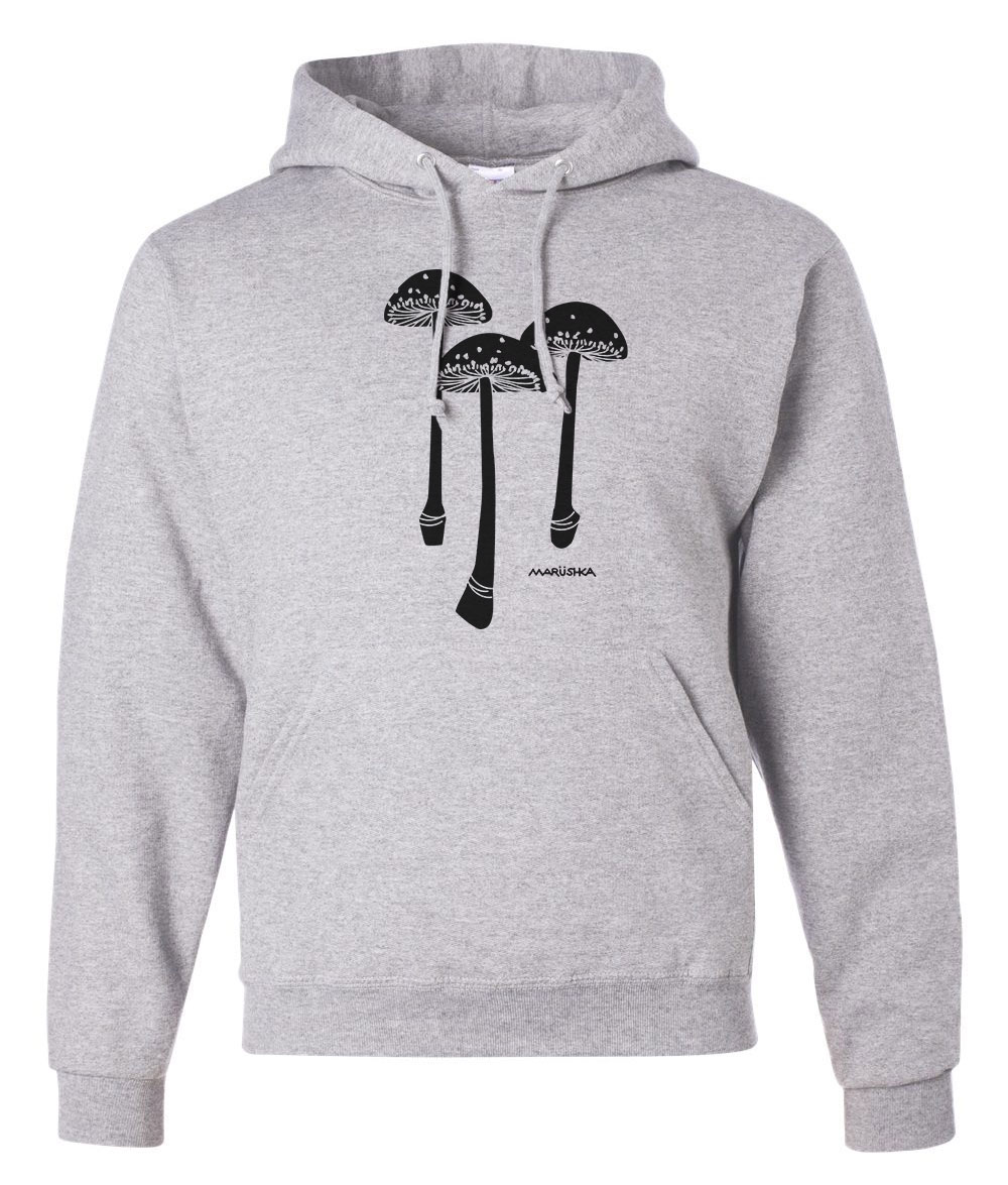 Classic Hoodie 3 Mushrooms (Black on Grey)