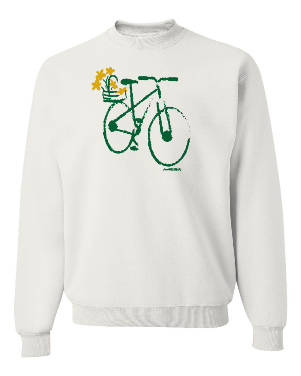 Crewneck Sweatshirt Bike Basket (Yellow & Green on White)