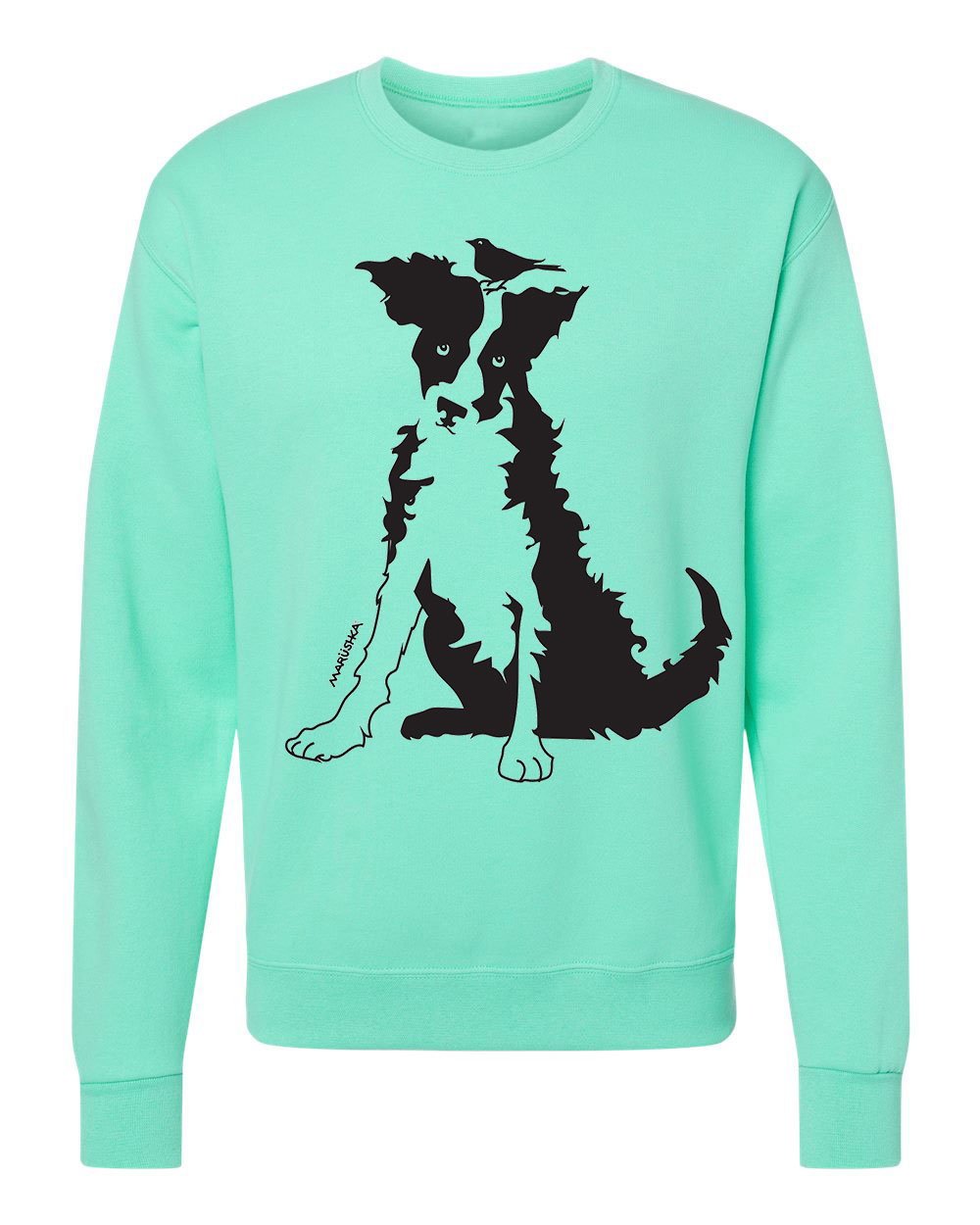 Crewneck Sweatshirt Bird Brain (Black on Aqua)