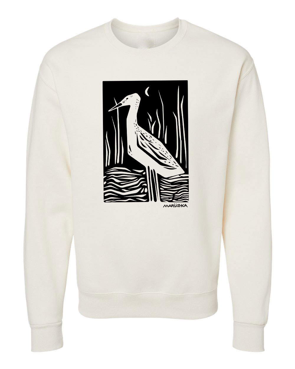 Crewneck Sweatshirt Marsh Bird (Black on Creme)