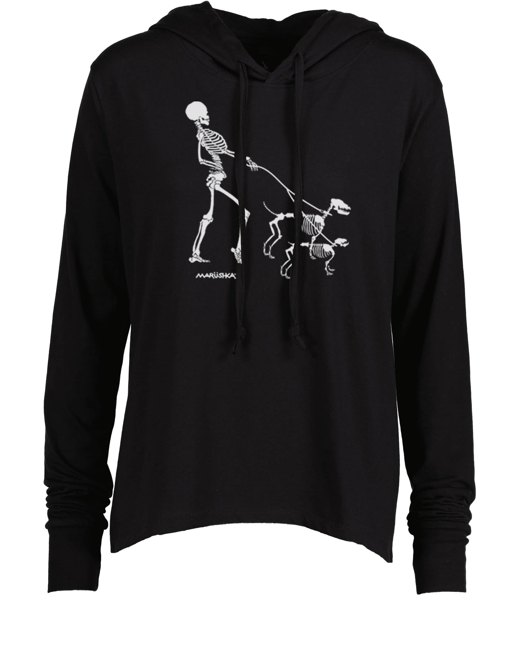 Long Sleeve Hooded T Skeleton Walk (White on Black)