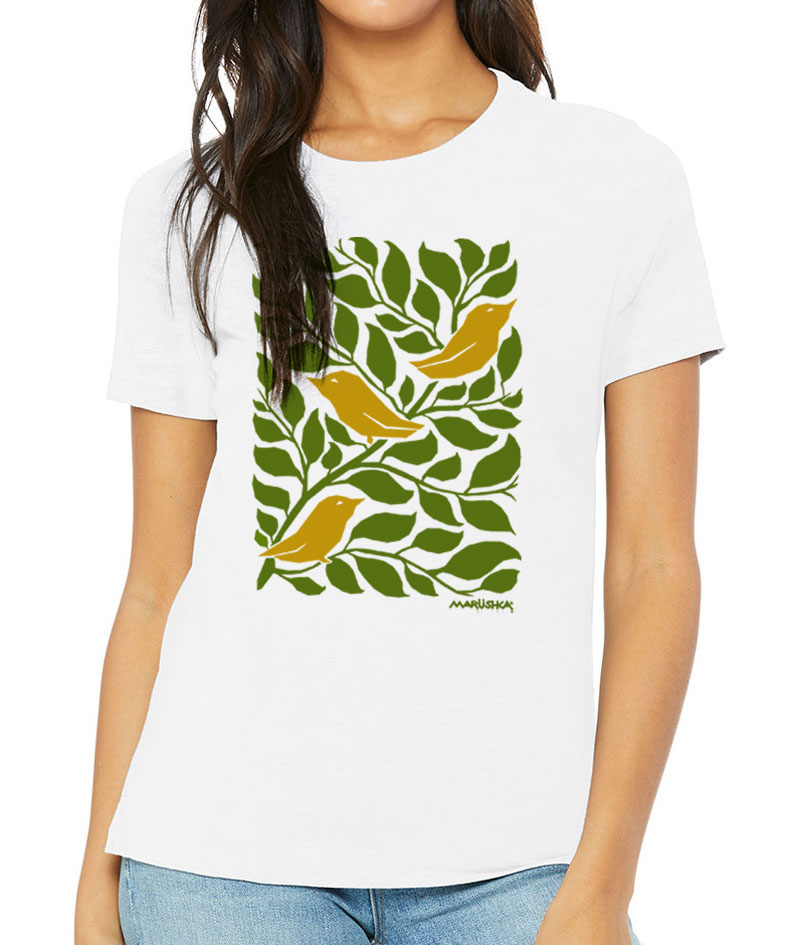 Relaxed Crewneck 3 Birds (Olive & Mustard on White)