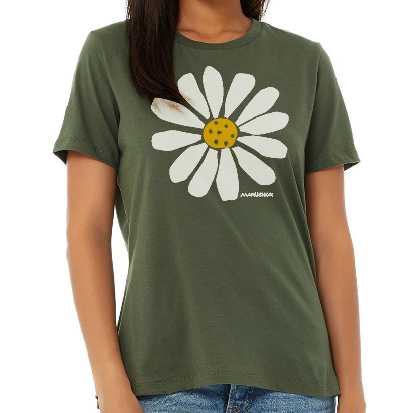 Relaxed Crewneck Big Daisy (Multi on Olive)