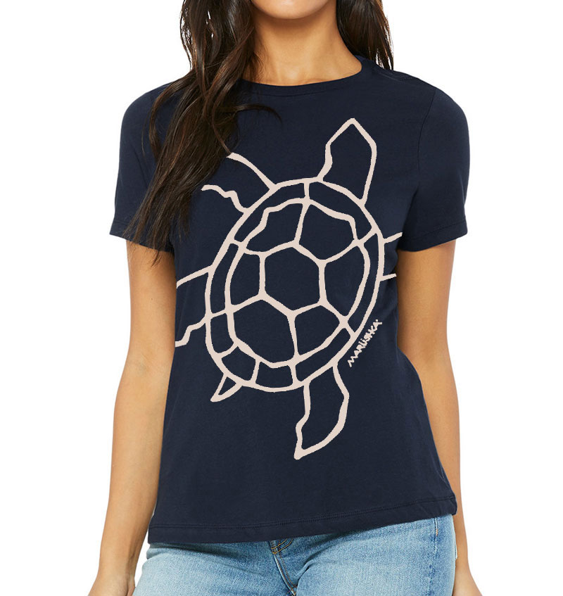 Relaxed Crewneck Big Sea Turtle (Natural on Navy)