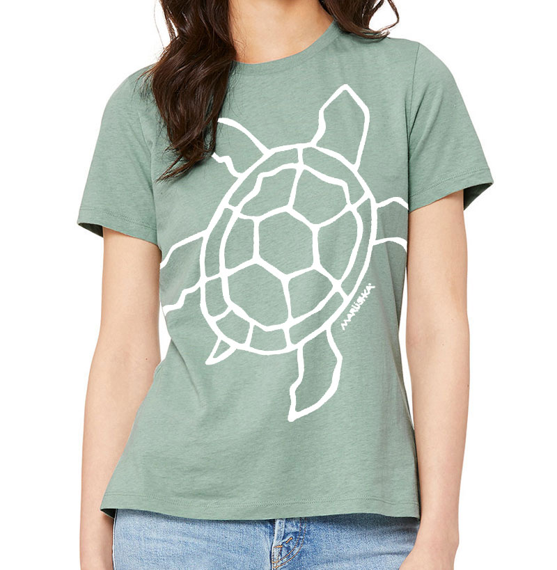 Relaxed Crewneck Big Sea Turtle (White on Sea Glass)