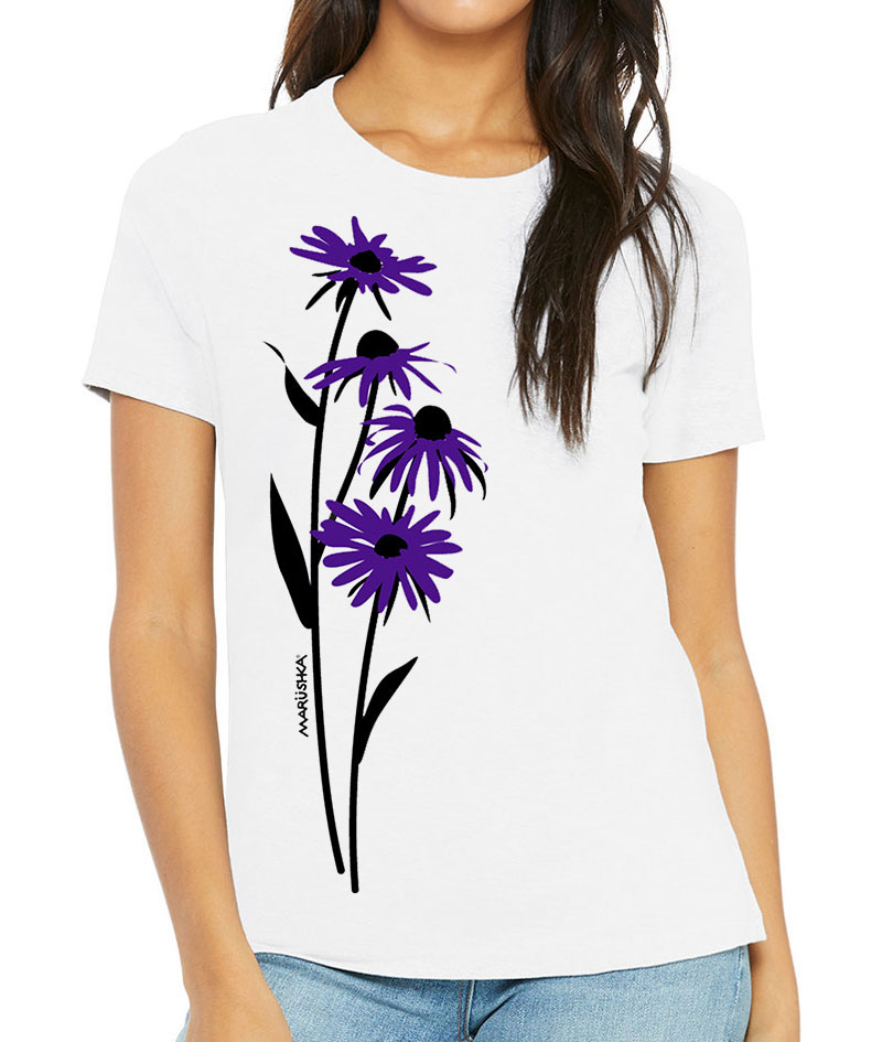 Relaxed Crewneck Black Eyed Susan (Black & Purple on White)