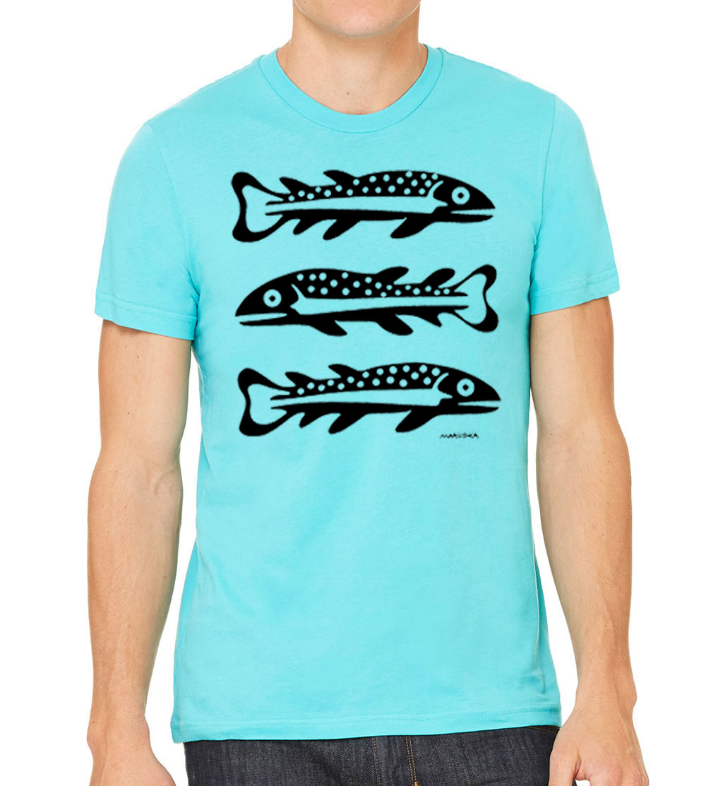 Short Sleeve T 3 Fish (Black on Teal)