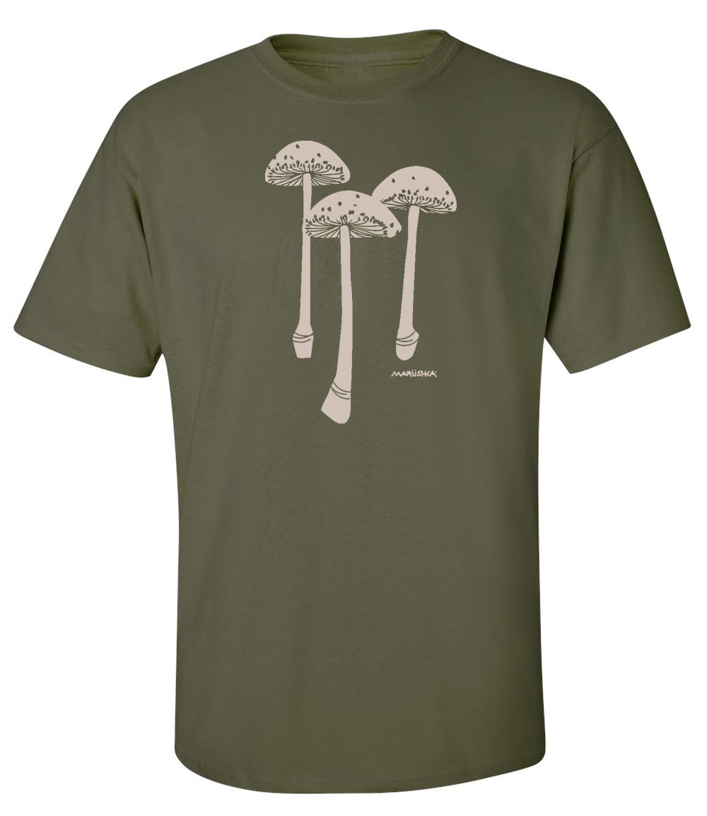 Short Sleeve T 3 Mushrooms (Natural on Olive)