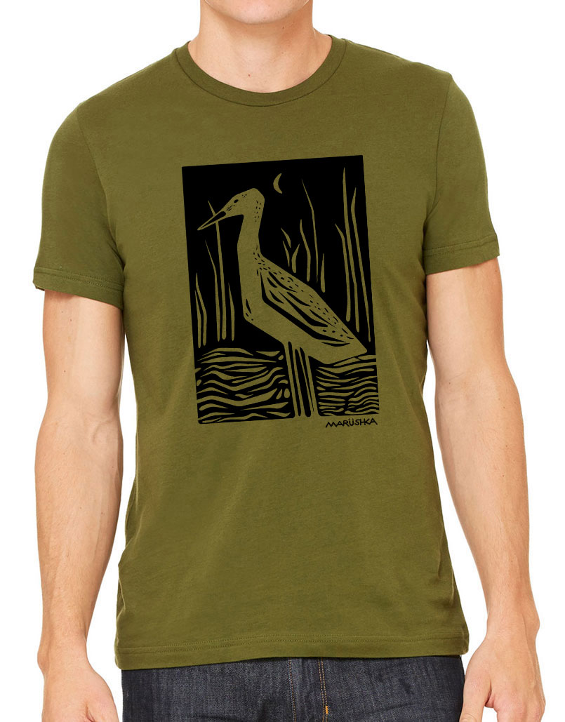 Short Sleeve T Marsh Bird (Black on Olive)
