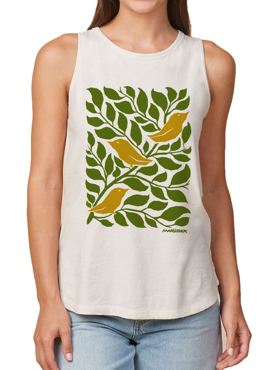 Tank Top 3 Birds (Olive & Mustard on Oyster)